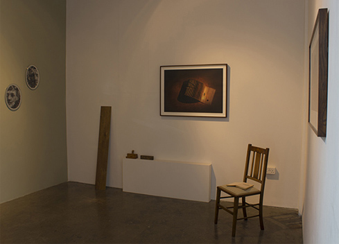 Published April 17, 2014 at 489 × 352 in Works ← Previous Next → Installation Shot, Image: Index of Love, Objects: Screenprint, optiwhite glass and silver (Unique), Savage Ground/Stony Ground, Reclaimed Antique Oak Chair, Book: The Art of Loving, Erich Fromm.